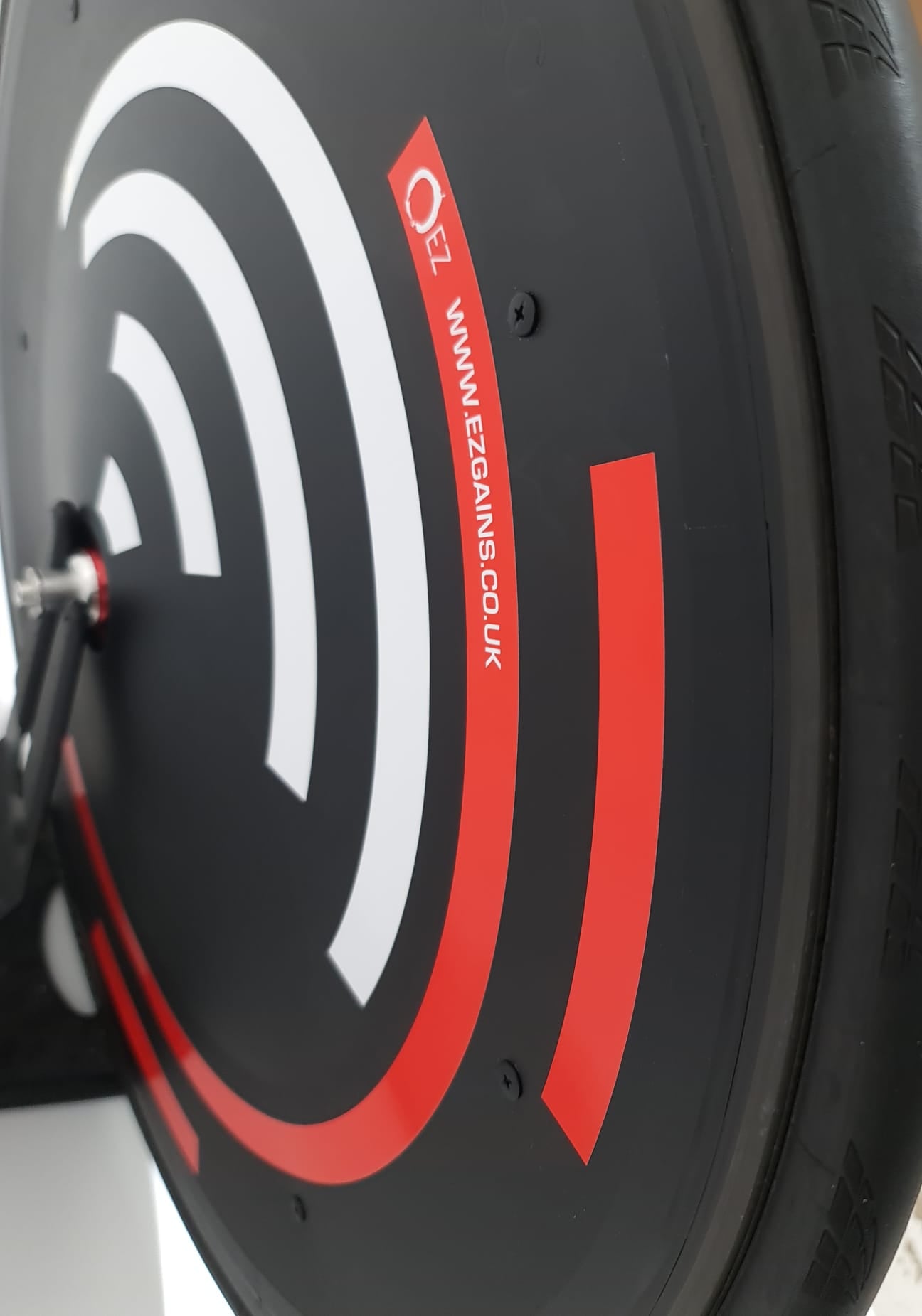 EZ Gains Rear Wheel Disc Cover: One of the first areas riders look to upgrade for aero improvements are their wheels. In time-trial and triathlon racing, many people equip their bikes with a completely covered rear wheel or a full rear disc wheel. This blocks all air from getting caught in the rear wheel and keeps it moving past quickly. On windy days, the disc may also create a sail effect, pushing the rider even faster. But bolting one of these on is not cheap. Just that rear wheel alone can cost anywhere from (£1,000 to £4,000).To make this rear wheel advantage more accessible to the masses, the team at EZ Gains has created an elegant solution to this problem. They’ve developed a simple cover made of durable and lightweight material that slips over your existing wheel, connecting securely and creating the SAME aero gains as if you purchased a fancy rear wheel. In fact, some testing suggests that depending on the wheel you install it on, the cover may perform better than a full disc wheel due to the fact of what quality hub you have, cheap disc wheel or old one often means cheap or poor-quality hub, this means if you already have a good quality wheel and add the EZ Disc this can enhance your gains, as the aero gains between and Disc and EZ Disc identical. Testing this out ourselves, we found that installation was quite simple and could be done at home with the appropriate tools (most will need a lock ring tool). Once on the bike, the feel and performance was evident. It really showed its stuff on those fast descents, capturing an extra mile or two per hour in comparison to our 80mm deep section rear wheel.