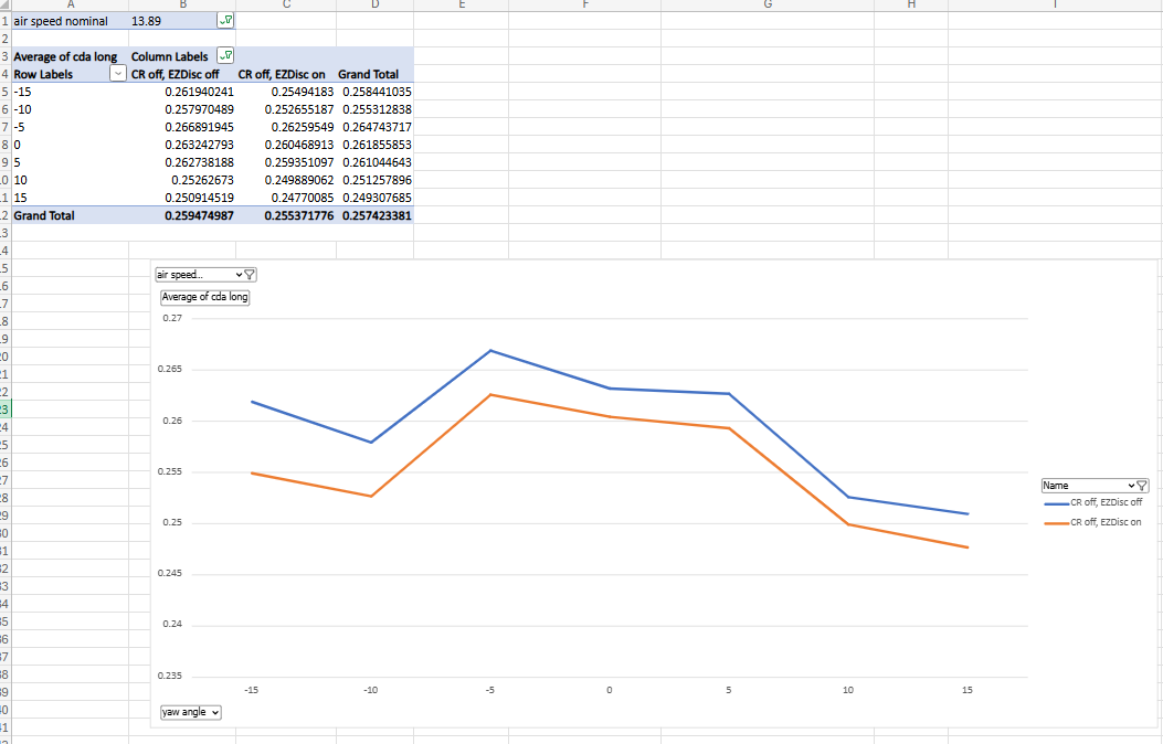 This is the averaged CDA for speeds between 30-50kph across all angles tested.