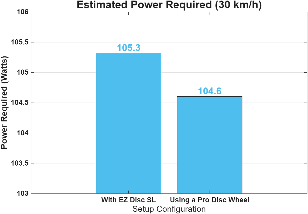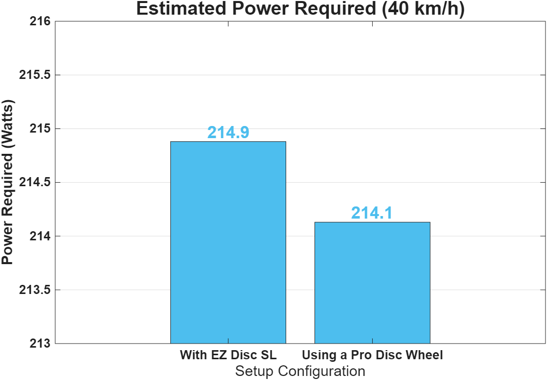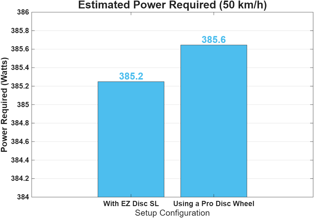 Taken accross a range of speeds, it shows the EZ Disc + CES Wheel rolls better than the disc wheel, under the exact same conditions.